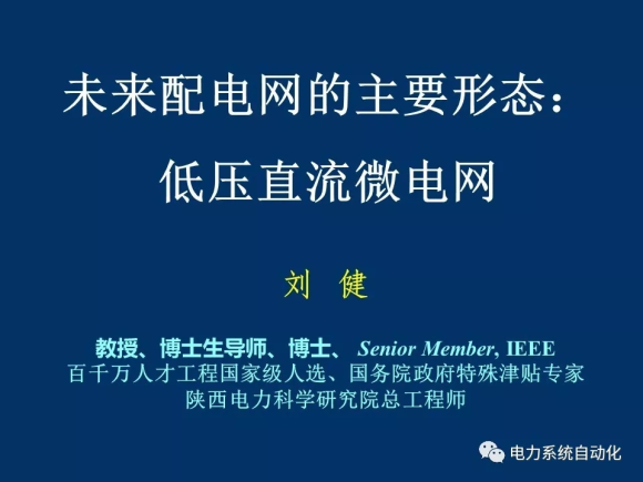 中國(guó)智能電網(wǎng)學(xué)術(shù)研討會(huì)4月13-15日在南京召開(kāi),陜西電力科學(xué)研究院劉健教授在會(huì)上作了題為“未來(lái)配電網(wǎng)的主要形態(tài):低壓直流微電網(wǎng)”的專題報(bào)告。小編征得專家同意,在此分享報(bào)告PPT,歡迎品讀。