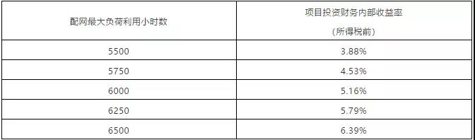 表1 配網(wǎng)最大負(fù)荷利用小時(shí)數(shù)與內(nèi)部收益率的關(guān)系