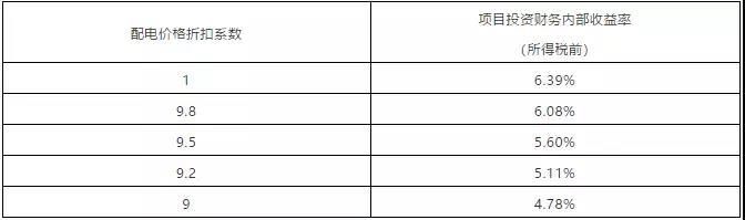 表2 配電價(jià)格折扣系數(shù)和內(nèi)部收益率關(guān)系