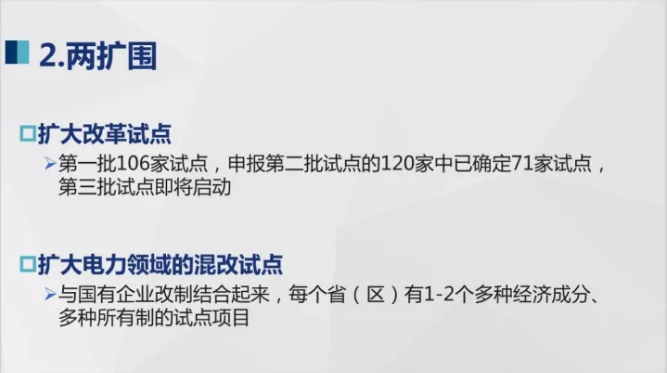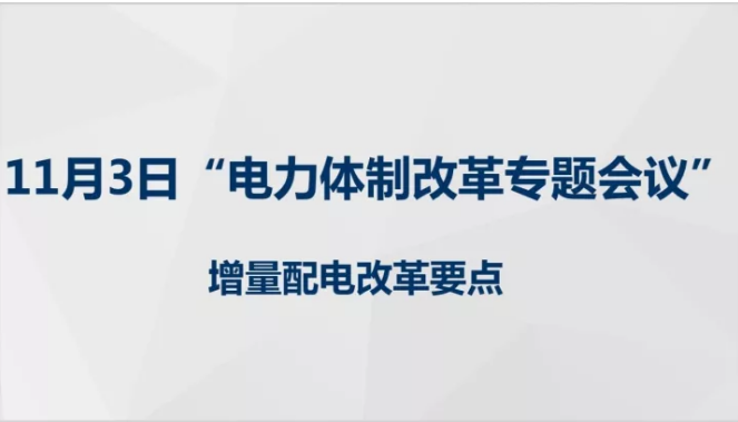11月3日由國(guó)家發(fā)改委、國(guó)家能源局組織召開(kāi)“電力體制改革專(zhuān)題會(huì)議”,根據(jù)參加會(huì)議企業(yè)反饋信息,本次會(huì)議傳遞出增量配電改革即將在“兩擴(kuò)圍、五明確、一糾偏”上下功夫,做工作,現(xiàn)將會(huì)議有關(guān)情況整理如下: