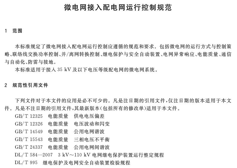 微電網(wǎng)接入配電網(wǎng)運(yùn)行控制規(guī)范》標(biāo)準(zhǔn)于2017年11月1日發(fā)布,2018年5月1日起開始實(shí)施。