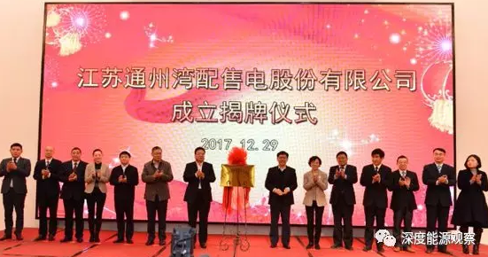 12月29日,省內(nèi)最大的增量配售電企業(yè)——江蘇通州灣配售電股份有限公司在南通揭牌成立。這是省內(nèi)第二家、也是省內(nèi)經(jīng)營區(qū)域最大的混合所有制配售電企業(yè)。