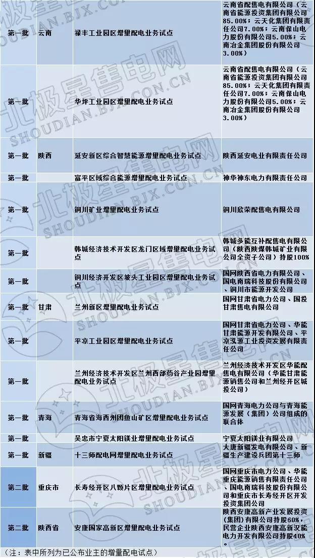 增量配電試點現(xiàn)狀