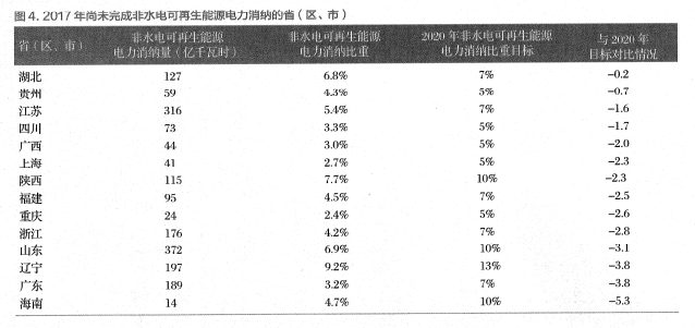 5月22日,國家能源局發(fā)布《2017年度全國可再生能源電力發(fā)展監(jiān)測評價報告》(以下簡稱《報告》),其中17個省(區(qū)、市)已經(jīng)提前完成2020年非水電可再生能源電力消納比重目標(biāo),廣東、山東、浙江、福建等14個省(區(qū)、市)尚未完成日標(biāo)。但隨著非水電可再生能源電力裝機(jī)比重提升,可再生能源補(bǔ)貼資金的缺口將進(jìn)一步擴(kuò)大,而水電與煤電或?qū)㈦y以承擔(dān)其帶來的電力成本上升。