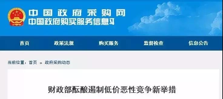 近日,中國政府采購網(wǎng)發(fā)布最新通告《財政部醞釀遏制低價惡性競爭新舉措》。