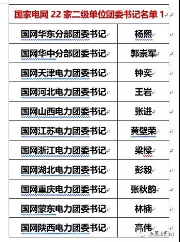 國(guó)家電網(wǎng)二級(jí)單位的團(tuán)委書記都有誰(shuí)?