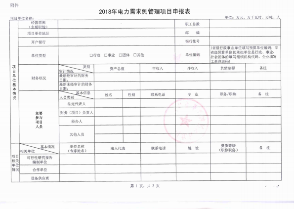 附件:2018年電力需求側(cè)管理項(xiàng)目申報(bào)表