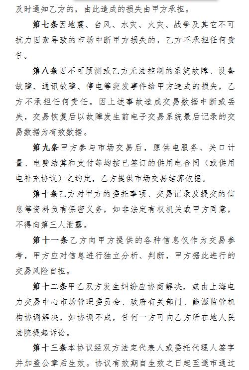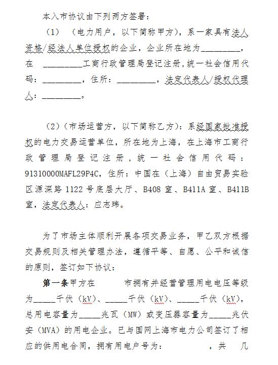 上海電力交易中心發(fā)布電力用戶入市協(xié)議