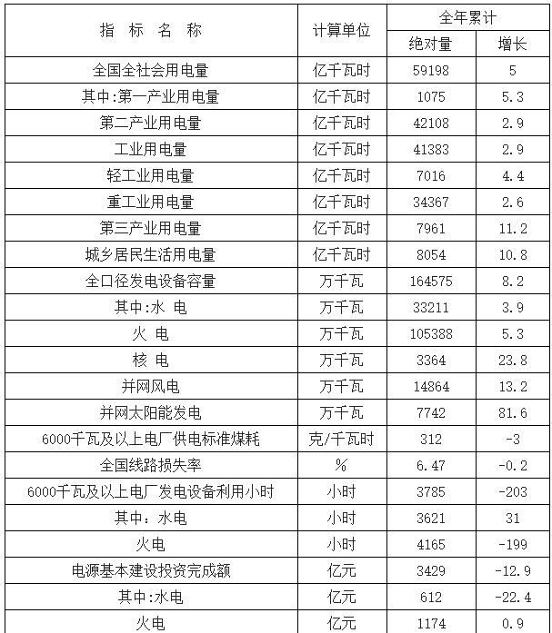 2016年末全國發(fā)電裝機(jī)容量164575萬千瓦,比上年末增長8.2%。其中,火電裝機(jī)容量105388萬千瓦,增長5.3%;水電裝機(jī)容量33211萬千瓦,增長3.9%;核電裝機(jī)容量3364萬千瓦,增長23.8%;并網(wǎng)風(fēng)電裝機(jī)容量14864萬千瓦,增長13.2%;并網(wǎng)太陽能發(fā)電裝機(jī)容量7742萬千瓦,增長81.6%。