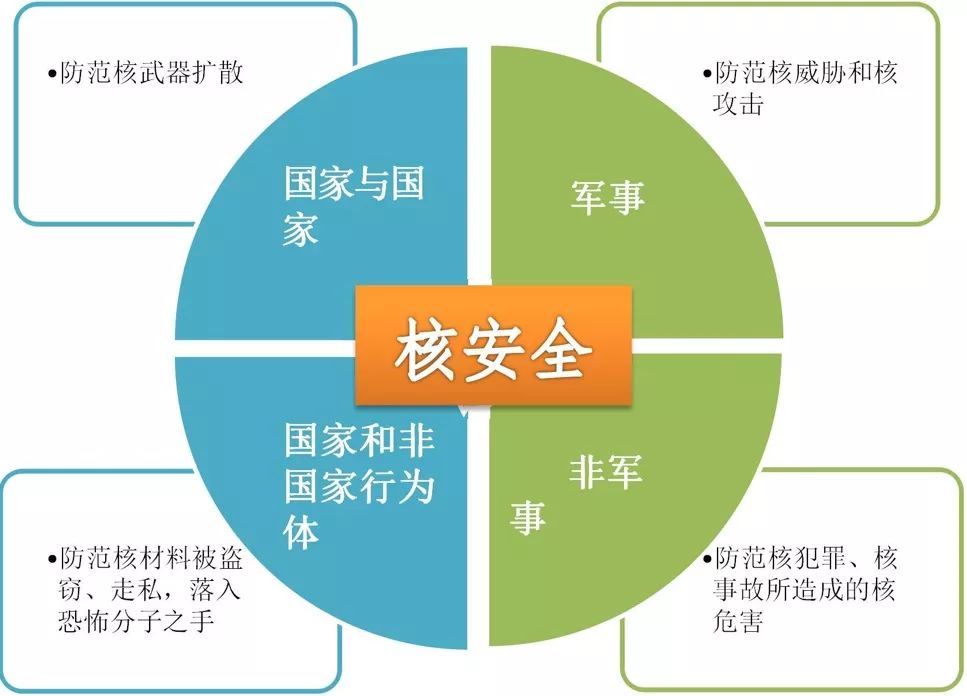 2014年,習近平總書記在國家安全委員會第一次會議上提出,構(gòu)建集政治安全、國土安全、軍事安全、經(jīng)濟安全、文化安全、社會安全、科技安全、信息安全、生態(tài)安全、資源安全、核安全等于一體的國家安全體系,首次明確核安全是國家安全體系的一部分。由于核武器具有巨大的殺傷力與破壞能量,核恐怖主義會給人民生命安全帶來極大危害,核事故會給國家和社會帶來不可估量的后果,因此維護核安全密切關(guān)乎國家的政治安全、社會安全以及生態(tài)安全。