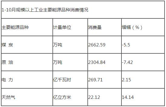 另外,全市工業(yè)企業(yè)消費(fèi)的能源品種主要以煤炭、原油、天然氣和電力為主。其中,1-10月全市工業(yè)煤炭消費(fèi)2662.59萬噸,同比下降5.46%。比同期消耗量削減了155.07萬噸,當(dāng)月削減量達(dá)61.32萬噸,1-10月完成全年煤炭削減任務(wù)的66.27%。原油消費(fèi)量為2304.84萬噸,同比下降7.42%,主要骨干企業(yè)年中停產(chǎn)檢修所致。