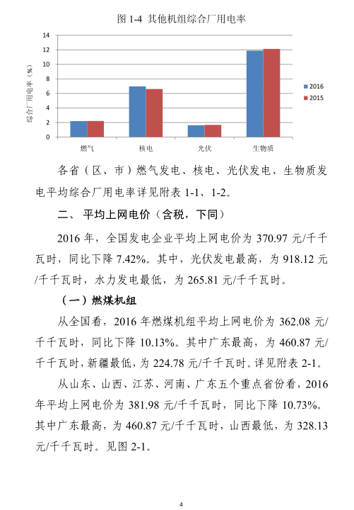 國家能源局日前發(fā)布了對全國主要電力企業(yè) 2016 年度價格情況的綜合廠用電率、平均上網(wǎng)電價等六個方面的統(tǒng)計分析結(jié)果: