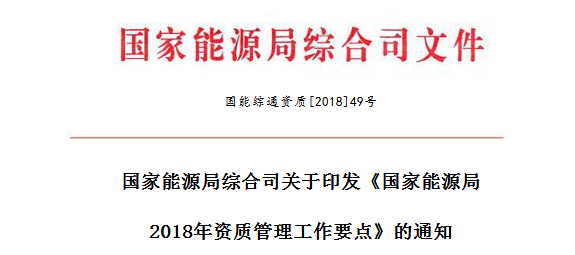 能源局印發(fā)了《國家能源局2018年資質(zhì)管理工作要點》,具體內(nèi)容如下: