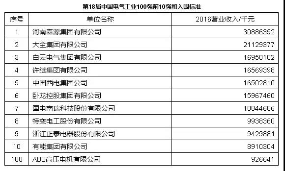 第18屆/2017年中國(guó)電氣工業(yè)100強(qiáng)研究報(bào)告(一)