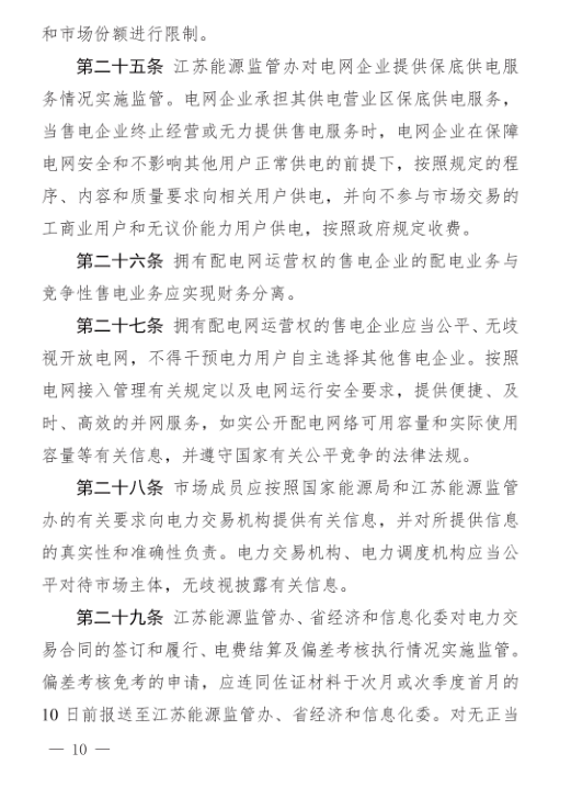 江蘇電力市場(chǎng)監(jiān)管辦法:電網(wǎng)企業(yè)開(kāi)展競(jìng)爭(zhēng)性售電將限制規(guī)模和份額