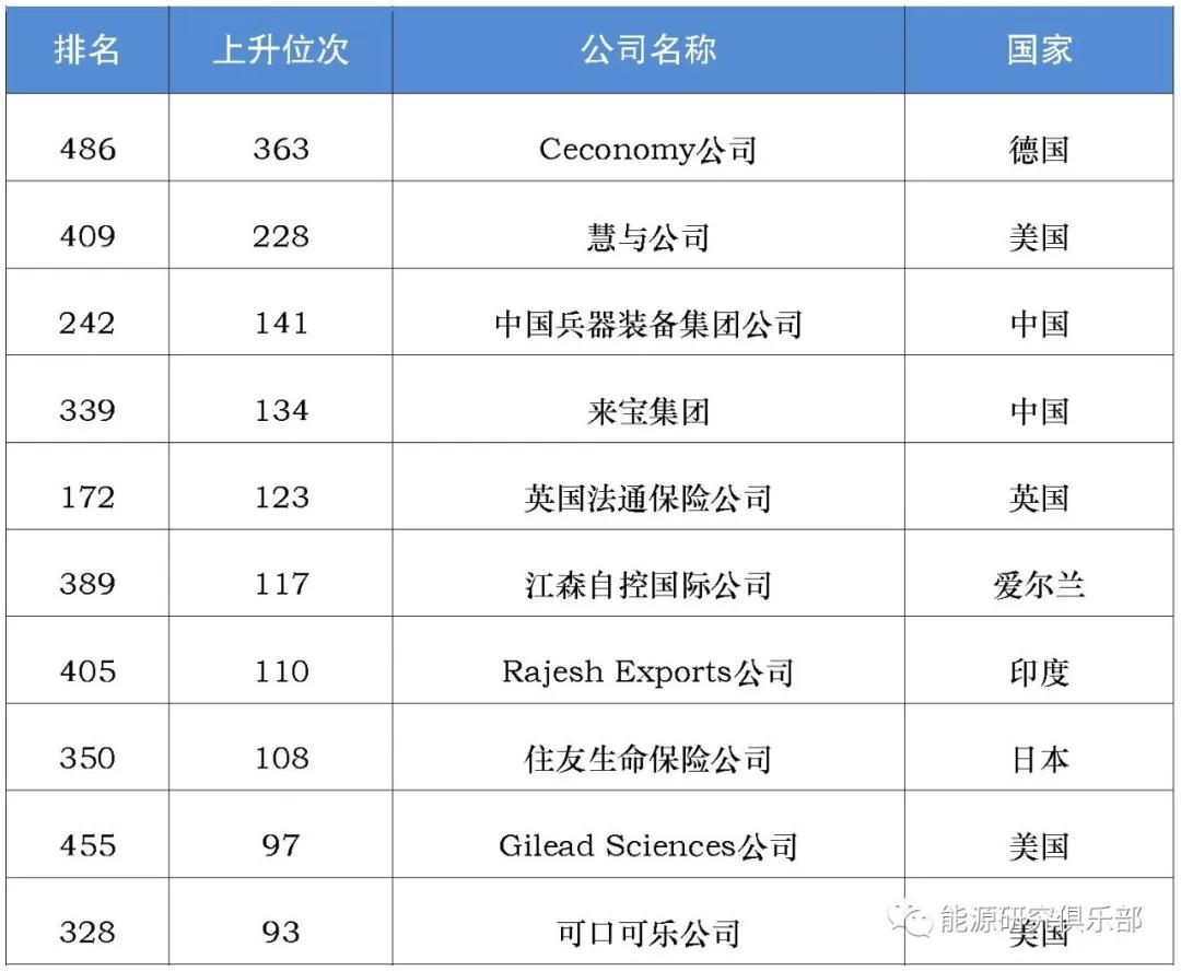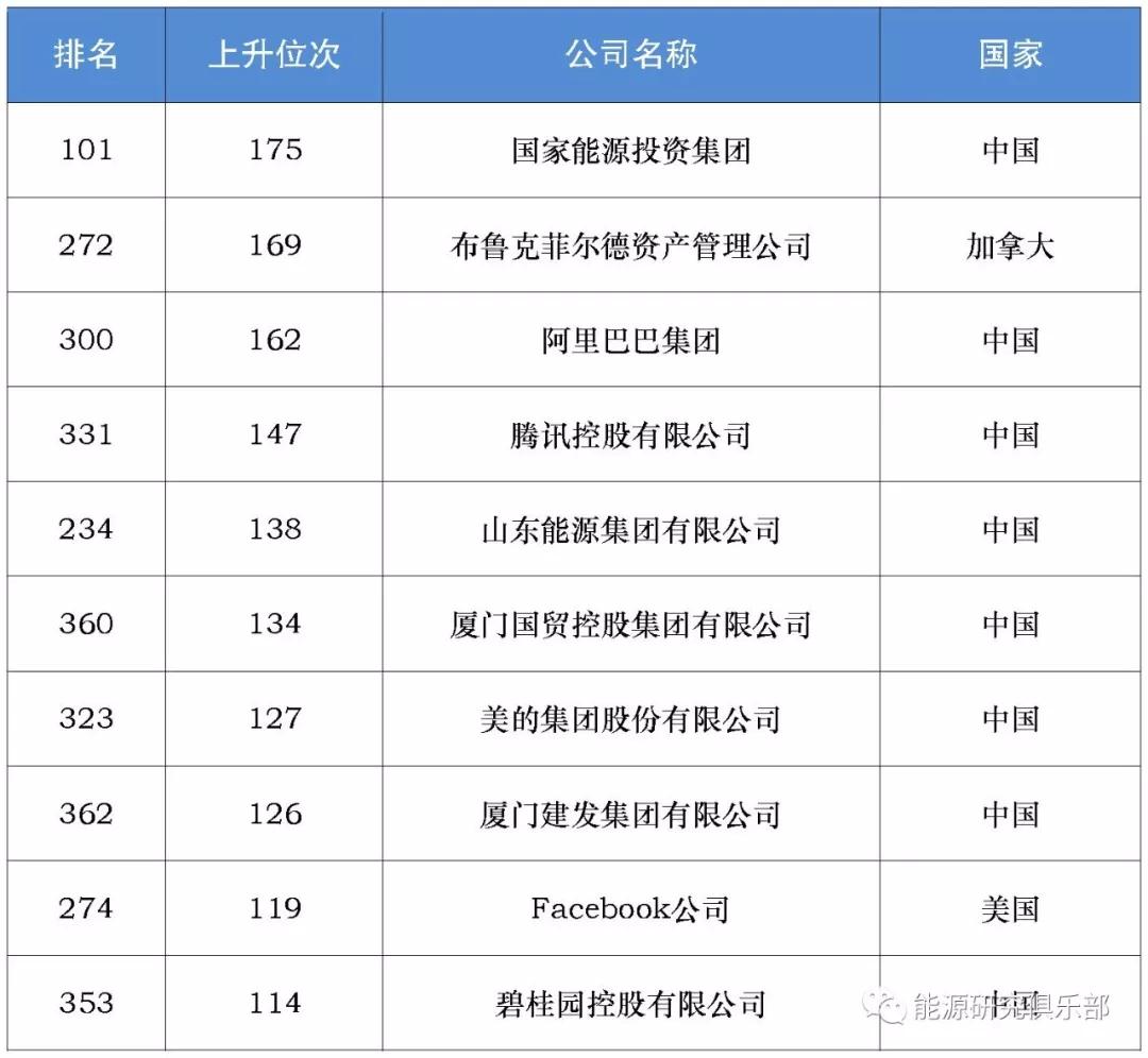 新組建不久的中國(guó)國(guó)家能源投資集團(tuán)排名比原神華集團(tuán)上一年躍升175位,是上升幅度最大的公司。中國(guó)企業(yè)在排名上升最快的10家企業(yè)中,占據(jù)8席,表現(xiàn)搶眼。去年前50家公司中躍升最快的是亞馬遜,排名提升了18位。