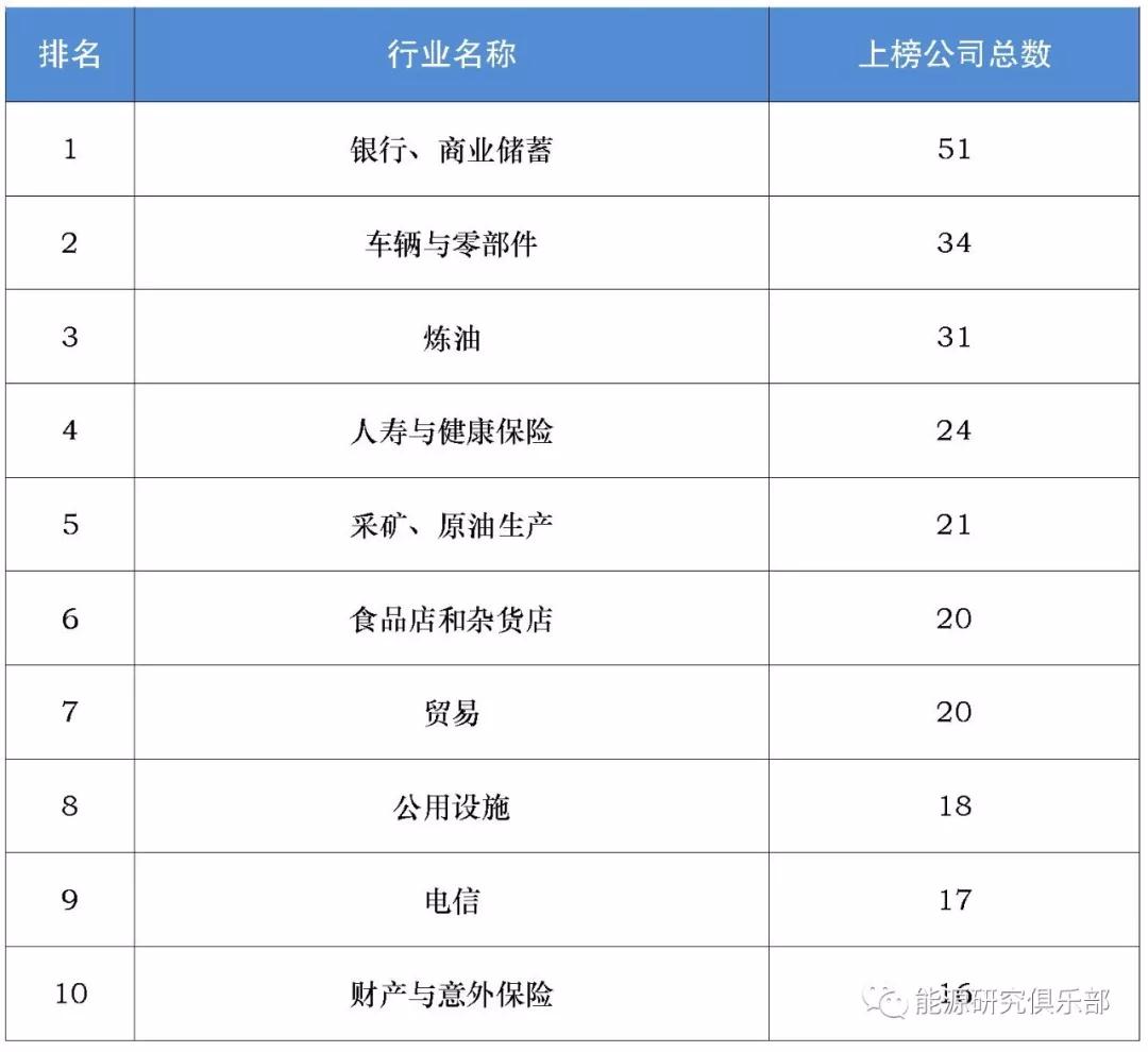 2018年入榜中國(guó)企業(yè)集中在如下幾個(gè)產(chǎn)業(yè):能源礦業(yè)17家,商業(yè)貿(mào)易13家,IT領(lǐng)域(包括電信、互聯(lián)網(wǎng)、電腦等硬件制造、軟件等)11家,銀行10家,金屬冶煉及制品9家,保險(xiǎn)7家,工程建筑7家,汽車7家,航空與國(guó)防6家,房地產(chǎn)5家。