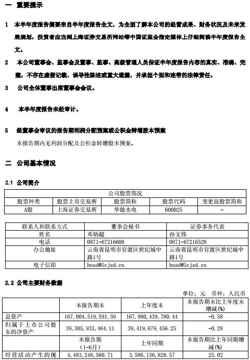 半年報(bào)丨華能水電上半年實(shí)現(xiàn)營(yíng)業(yè)收入 64.69 億元