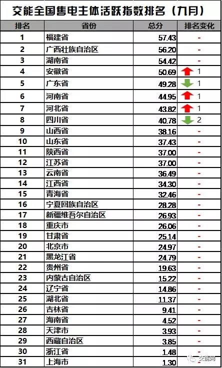 8月份,全國共新公示了55家售電公司,各省新增售電公司數(shù)量有限,售電公司參與交易的省份,交易也是有條不紊,導(dǎo)致了各省份的排名和上月基本保持不變。
