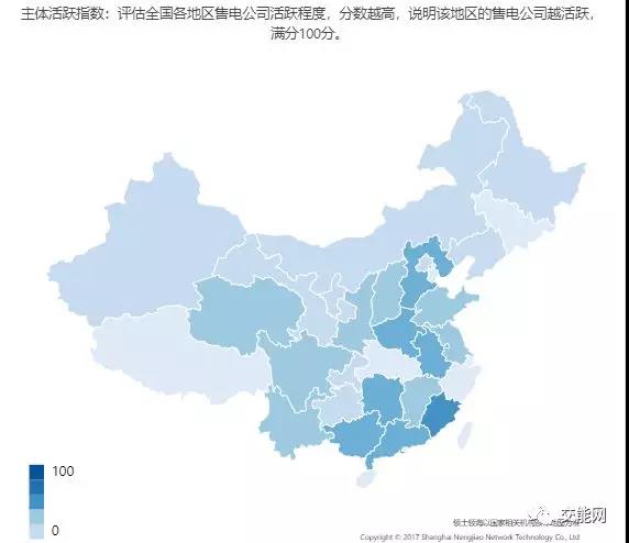 交能網(wǎng)的【主體活躍】指數(shù),旨在為助力廣大售電市場(chǎng)參與者、關(guān)注者快速準(zhǔn)確地了解某地區(qū)售電市場(chǎng)活躍程度,結(jié)合該地區(qū)用電量水平等因素,從售電公司成立數(shù)量、公示數(shù)量、參與直接交易情況等方面,進(jìn)行市場(chǎng)綜合評(píng)估。評(píng)分體系詳情如下圖所示。