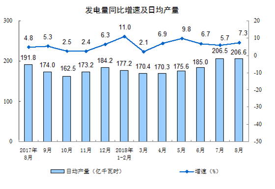 統(tǒng)計(jì)局:2018年8月份火力發(fā)電量4602 億千瓦時(shí) 同比增長(zhǎng)6.0%