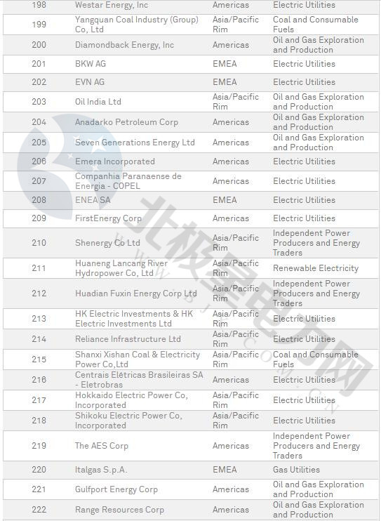 普氏2018年全球能源公司250強(qiáng)榜單出爐(附全名單)