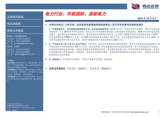 本周行業(yè)觀點:1-8月份,全社會用電量增速保持快速增長,各產業(yè)用電量均實現較快增長
