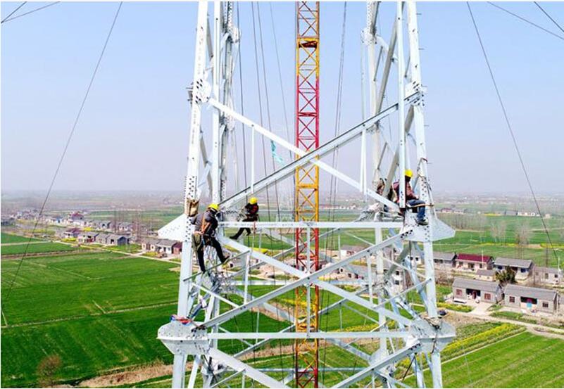 泰州±800千伏換流站至500千伏雙草變輸電工程進(jìn)入最后組塔階段