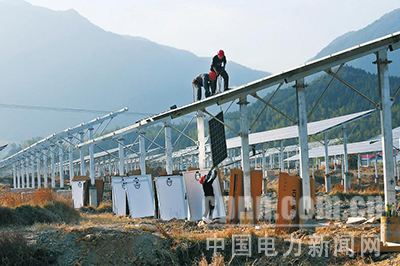 在福建浦城縣仙陽鎮(zhèn)早田村昌盛現(xiàn)代農(nóng)業(yè)大棚光伏發(fā)電站項目現(xiàn)場,浦城供電公司施工人員正在加緊安裝太陽能電池板。該項目計劃建成10萬千瓦光