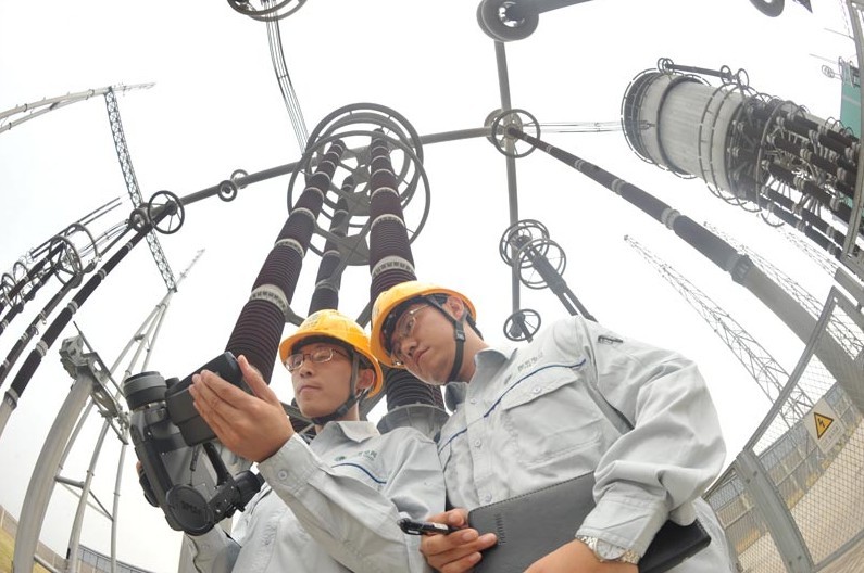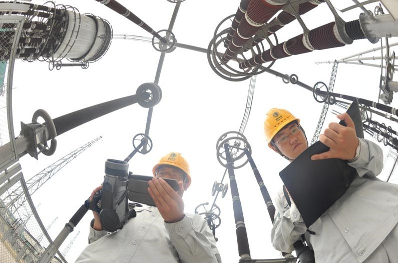 據(jù)統(tǒng)計,今年1月至8月份四川錦屏水電站——蘇州的±800千伏特高壓輸電網(wǎng)累計輸送電量超過128億千瓦時,最大輸送負(fù)荷達(dá)483萬千瓦,占江蘇全部區(qū)外來電負(fù)荷的三分之一以上。遠(yuǎn)方清潔水電輸入江蘇,成為當(dāng)?shù)赜行?zhàn)勝持續(xù)高溫天氣的功勛電能。今夏持續(xù)高溫,江蘇電網(wǎng)用電負(fù)荷屢創(chuàng)新高,江蘇最大用電負(fù)荷達(dá)到8141萬千瓦,比2012年增長12.6%。江蘇因此成為繼廣東省之后第二個最大用電負(fù)荷超8000萬千瓦的省份。圖為8月29日,運行人員正在±800千伏特高壓蘇州換流站內(nèi)巡視設(shè)備。
