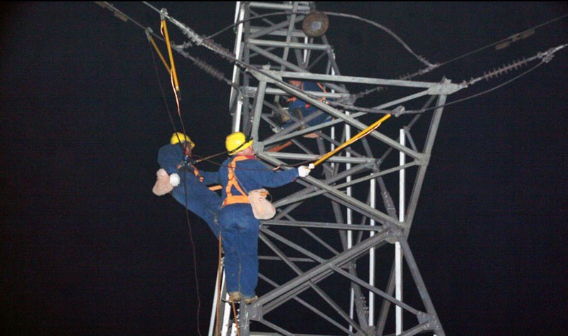35千伏滕姜線為110千伏滕西變電站至35千伏姜屯變電站主供線路。在前一天線路巡視檢查時(shí),運(yùn)行人員通過(guò)測(cè)溫儀發(fā)現(xiàn)了20號(hào)轉(zhuǎn)角塔弓子線發(fā)熱,為了確保春節(jié)期間電網(wǎng)安全運(yùn)行,他們即刻制定計(jì)劃,對(duì)該鐵塔進(jìn)行深夜零點(diǎn)消缺。4名員工在手燈的照射下登上了冰冷的鐵塔,然后利用懸梯對(duì)三相弓子線重新壓接。在15米的鐵塔他們一直工作了40多分鐘,下來(lái)的時(shí)候每個(gè)人的臉上都掛滿了汗水。缺陷消除了,寒冷寂靜的曠野里淹沒(méi)了他們歸途的身影。