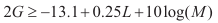 圖5 2.5 Gbps速率下網(wǎng)絡(luò)規(guī)模與放大器增益的關(guān)系Fig.5 Relationships among L, M, and G of the network under the case of 2.5Gbps data rate