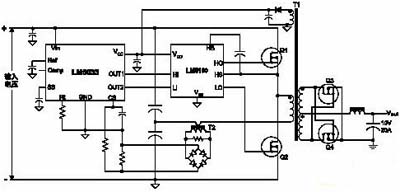 新型IBA電源系統(tǒng)方法需要兩級(jí)轉(zhuǎn)換:首先是非穩(wěn)壓隔離級(jí),然后是多個(gè)緊密調(diào)節(jié)的負(fù)載點(diǎn)板上安裝的DC/DC電源模塊。隔離級(jí)(稱作中間總線轉(zhuǎn)換器)的拓?fù)浣Y(jié)構(gòu)一般是開(kāi)環(huán)、非穩(wěn)壓、自由運(yùn)行“直流變壓器”,被選擇用來(lái)隔離和降低總線電壓,同時(shí)保證低成本和高功率轉(zhuǎn)換效率(大于95%)。雙輸出LM5033 PWM控制器和LM5100半橋驅(qū)動(dòng)器構(gòu)成一個(gè)理想的芯片組解決方案,能將這些中間總線轉(zhuǎn)換器設(shè)計(jì)中需要的外部元件成本和數(shù)量降至最低。