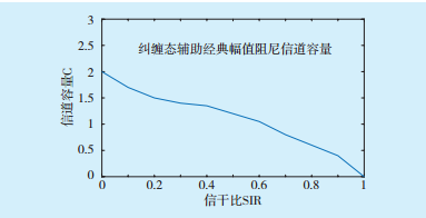 考慮振幅阻尼信道,信干比記為γ,計算糾纏輔助狀態(tài)下振幅阻尼信道的容量,糾纏輔助經(jīng)典振幅阻尼信道容量如圖1所示。