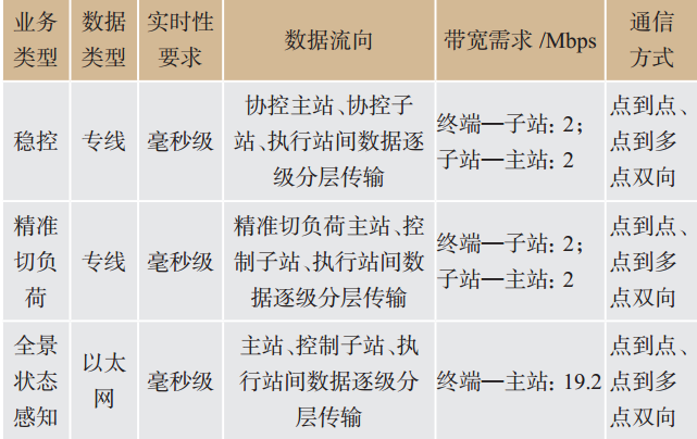 不同業(yè)務(wù)的實(shí)時(shí)性及帶寬需求見表1所列。