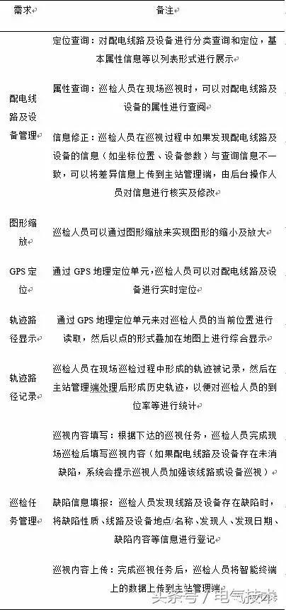 根據(jù)電纜通道巡視系統(tǒng)的業(yè)務開展需求,智能終端的實際應用需求如表1所示。