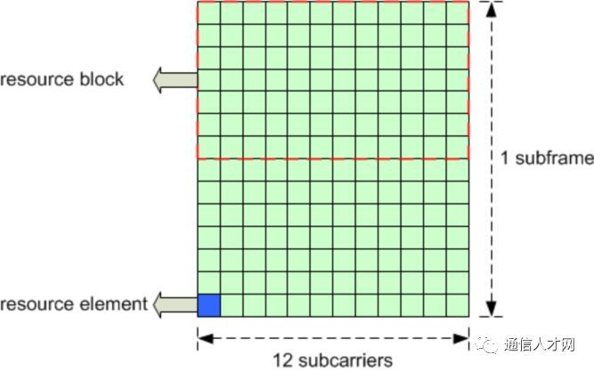 調(diào)度的最小單位是RB(Resource Block)對,頻域上包含12個子載波(180kHz),時域上為1個子幀(1ms),ENODEB通過使用不同的RB進(jìn)行信道分配,實(shí)現(xiàn)不同的功能。比如PDCCH用于下行物理信道的控制,PDSCH用于用戶面數(shù)據(jù)傳輸。RB示意圖如下: