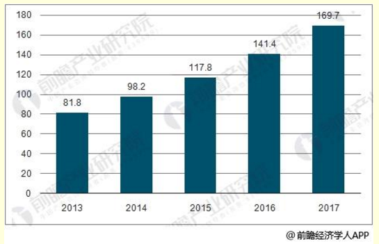 目前我國(guó)專(zhuān)網(wǎng)通信市場(chǎng)規(guī)模在百億元人民幣級(jí)別,全球無(wú)線專(zhuān)網(wǎng)通信行業(yè)市場(chǎng)規(guī)模近千億。在經(jīng)濟(jì)發(fā)展、國(guó)家支持、大型活動(dòng)舉辦、具有自主知識(shí)產(chǎn)權(quán)的PDT標(biāo)準(zhǔn)制定等因素的帶動(dòng)下,我國(guó)專(zhuān)網(wǎng)通信市場(chǎng)迎來(lái)高速增長(zhǎng)期。據(jù)前瞻產(chǎn)業(yè)研究院發(fā)布的《專(zhuān)網(wǎng)通信行業(yè)發(fā)展前景預(yù)測(cè)與投資戰(zhàn)略規(guī)劃分析報(bào)告》數(shù)據(jù)顯示,2013-2017年,保守估計(jì)我國(guó)專(zhuān)網(wǎng)通信行業(yè)將保持在 18%以上的速度增長(zhǎng),2017年可達(dá)169.7億元。