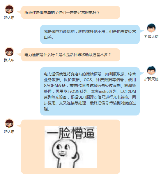 在電力通信中,傳輸?shù)臉I(yè)務(wù)可以分為兩類,一類是生產(chǎn)實(shí)時業(yè)務(wù),一類是非生產(chǎn)實(shí)時業(yè)務(wù)。用一句話來說就是:這個生產(chǎn)業(yè)務(wù)緊急不緊急,需不需要實(shí)時傳輸。那什么叫實(shí)時傳輸呢?比如說:直播就是實(shí)時傳輸,錄播就是非實(shí)時傳輸。在電力通信中,主要的生產(chǎn)實(shí)時業(yè)務(wù)有:調(diào)度數(shù)據(jù)、計費(fèi)數(shù)據(jù)等,主要的非生產(chǎn)實(shí)時業(yè)務(wù)有:綜合數(shù)據(jù)網(wǎng)(如OA辦公系統(tǒng))等。變電站的主控室內(nèi)有很多采集信息的裝置,如保護(hù)接口裝置采集保護(hù)信息,這些裝置采集到變電站某一個業(yè)務(wù)的具體數(shù)據(jù)后,就通過通信專業(yè)提供的通道,從這個變電站傳輸?shù)降卣{(diào)進(jìn)行匯總、分析。打個比方,通信就像是快遞公司,變電站的某一個業(yè)務(wù)的具體信息就像是具體的一個快遞,通信人員把他們貼上目的地址的標(biāo)簽,然后裝箱、上車、走高速,如果是重要的業(yè)務(wù),也許還會“走鐵路”、“坐飛機(jī)”——使用光信號傳輸。