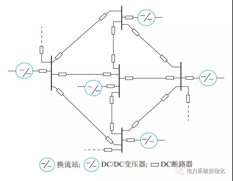 圖1所示的特高壓直流輸電網(wǎng)絡(luò)在直流母線上將多回特高壓直流輸電線連結(jié),形成了“一點(diǎn)對多點(diǎn)”和“多點(diǎn)對一點(diǎn)”的網(wǎng)絡(luò)形式。為了避免母線短路時需切除的線路過多,網(wǎng)絡(luò)中由母線和斷路器構(gòu)成的主接線的實(shí)際結(jié)構(gòu)比圖1所示的結(jié)構(gòu)要更復(fù)雜一些,所需斷路器的數(shù)量也更多一些。高壓直流斷路器造價很高,單臺額定電壓和電流為320kV/2kA的混合式高壓直流斷路器的造價高達(dá)1~2億元。當(dāng)電壓和容量進(jìn)一步大幅提升,混合式特高壓直流斷路器中需要串并聯(lián)的電子元器件需要大量增加,其造價也隨之大幅增加。因此,特高壓直流網(wǎng)絡(luò)的投資成本將是非常高的。