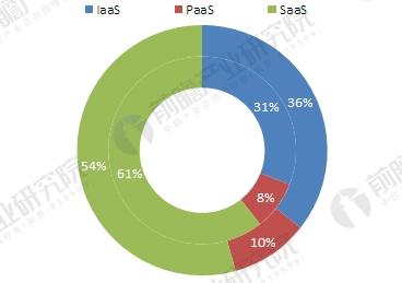 2015-2016年全球云計算的市場結(jié)構(gòu)(單位:%)
