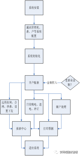 本系統(tǒng)分為五大模塊,分別是操作員登陸模塊、系統(tǒng)配置模塊、用戶(商鋪)管理模塊、售電管理模塊、報表中心模塊,系統(tǒng)大致運行和操作流程如下: