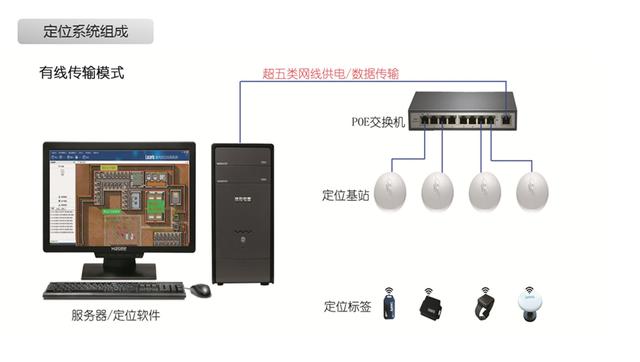 如圖所示,發(fā)電廠人員現(xiàn)場安全(定位)管理系統(tǒng)主要由人員定位管理平臺、定位服務(wù)器、視頻分析服務(wù)器、POE交換機(jī),定位基站,定位標(biāo)簽,攝像機(jī)等設(shè)備構(gòu)成。