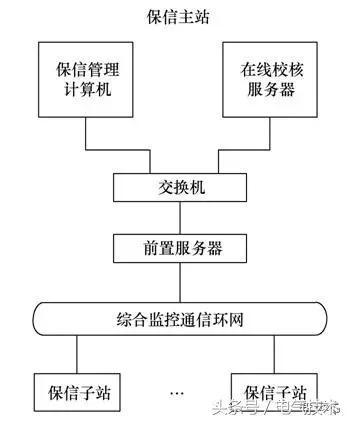 地鐵保護信息管理系統(tǒng)由“保信子站”和“保信主站”組成,其中子站負責保護信息數(shù)據(jù)的收集,主站負責保護信息數(shù)據(jù)的管理和分析。保信主站中,保護管理計算機為用戶接口設備,用于配置在線校核系統(tǒng)和讀取校核報告;在線校核服務器用于存儲校核數(shù)據(jù)庫和執(zhí)行校核算法;交換機和前置服務器用于讀取保護定值、故障波形和核心斷路器狀態(tài)。系統(tǒng)結(jié)構(gòu)如圖1所示。