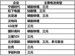 2017年全球前十動(dòng)力電池企業(yè)主要電池類型