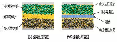 固態(tài)鋰電池與傳統(tǒng)鋰電池的技術(shù)原理示意圖