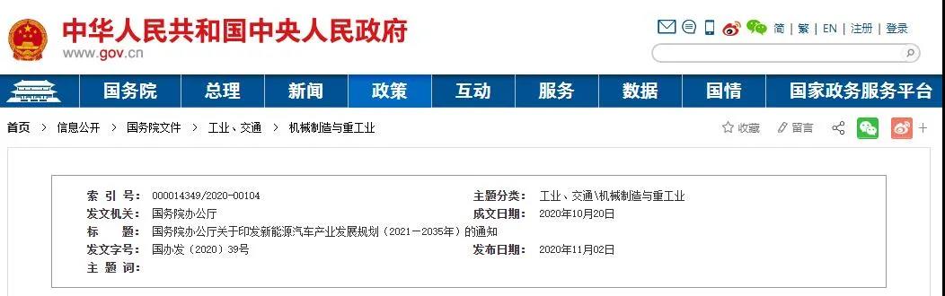 《新能源汽車產(chǎn)業(yè)發(fā)展規(guī)劃(2021—2035年)》已經(jīng)國(guó)務(wù)院同意,現(xiàn)印發(fā)給你們,請(qǐng)認(rèn)真貫徹執(zhí)行。