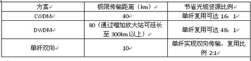 針對光纜資源緊張的現(xiàn)實(shí)問題,光迅科技在平衡網(wǎng)絡(luò)傳輸需求與投資成本的前提下,設(shè)計(jì)的一系列解決方案,成本較低,開通及維護(hù)方便,應(yīng)用靈活,可按需擴(kuò)容,對業(yè)務(wù)及速率透明,在傳輸需求復(fù)雜多變而光纜資源較少的接入層,被認(rèn)可為當(dāng)前極佳的解決方案并得到了廣泛應(yīng)用。表1對各種方案進(jìn)行了比較。