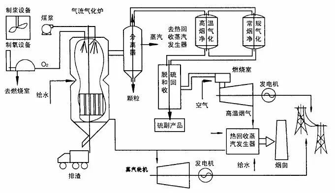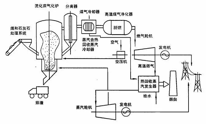 的硫化物、氮化物、粉塵等污染物, 變?yōu)榍鍧嵉臍怏w燃料, 然后送入燃?xì)廨啓C(jī)的燃燒室燃