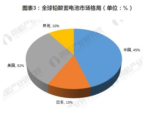 從全球鉛酸蓄電池產(chǎn)能規(guī)模來(lái)看,中國(guó)是生產(chǎn)大國(guó),產(chǎn)量占全球的比重達(dá)到45%左右,其次是美國(guó),產(chǎn)量占比約為32%,日本位居第三,占比接近13%。